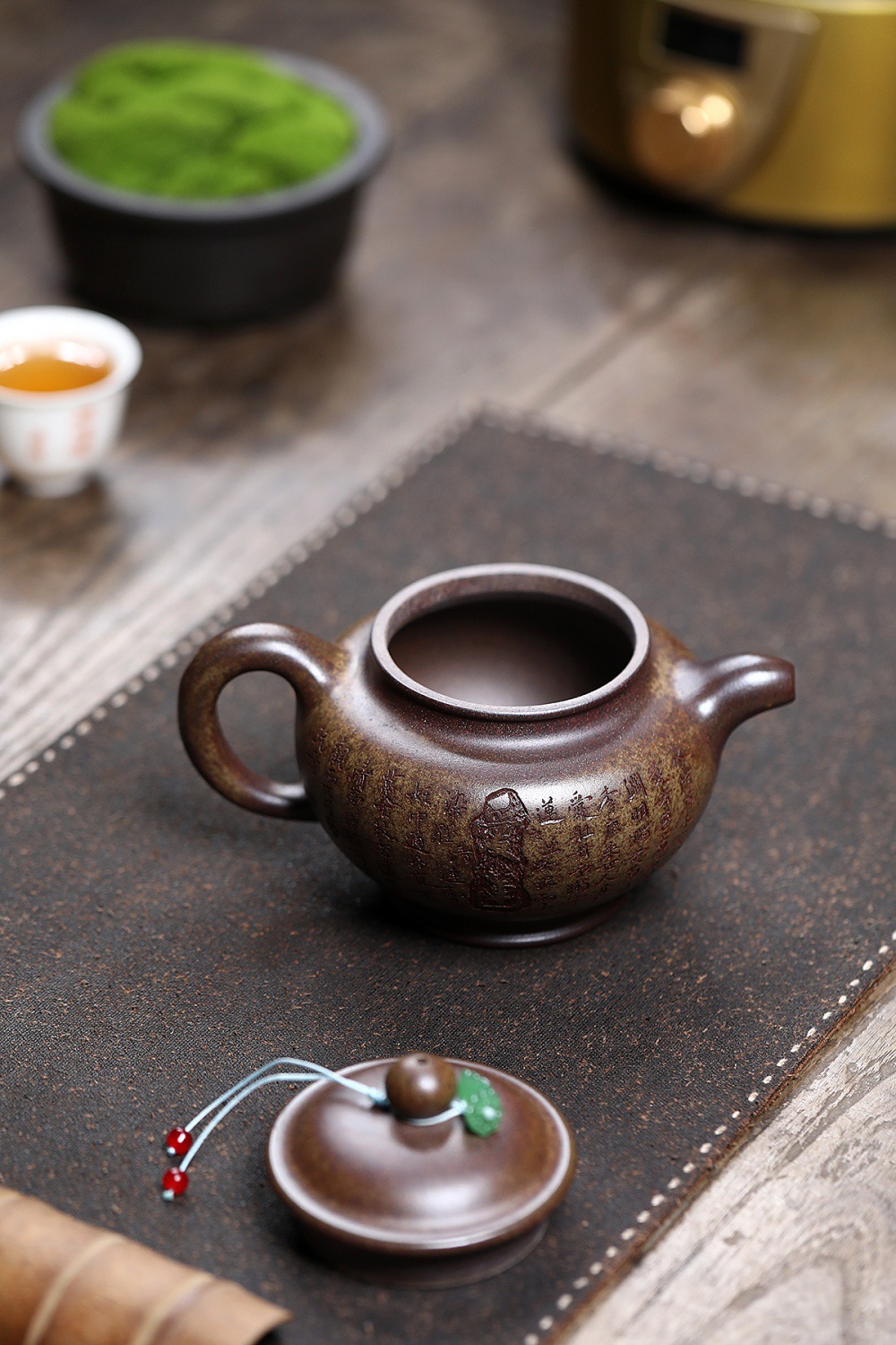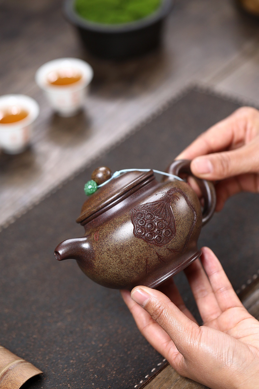 Chúng ta dùng nước đun sôi tưới lên xung quanh ấm và nắp để loại bỏ những bụi bẩn trong quá trình chế tác.