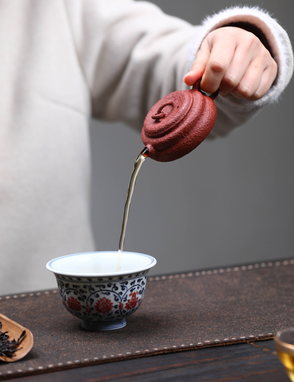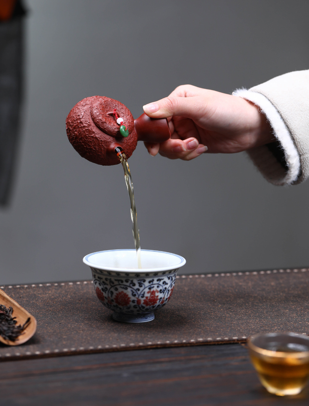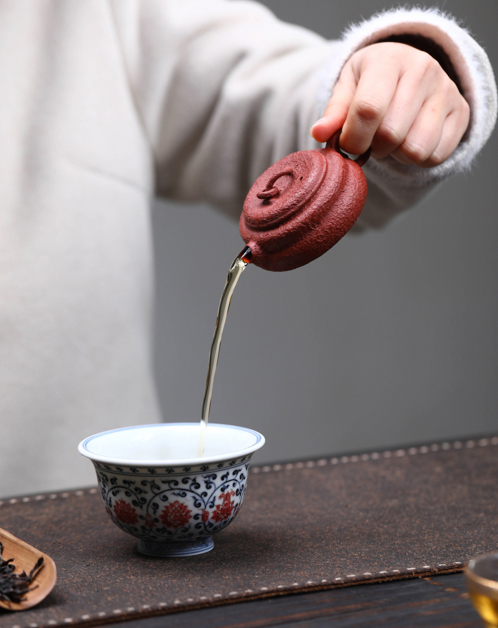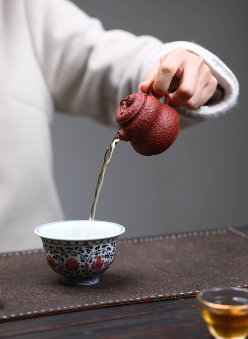 Chúng ta dùng nước đun sôi tưới lên xung quanh ấm và nắp để loại bỏ những bụi bẩn trong quá trình chế tác.