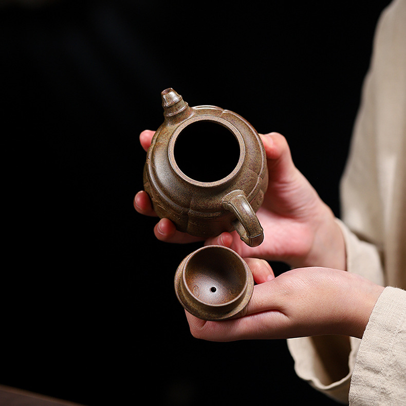 Chúng ta dùng nước đun sôi tưới lên xung quanh ấm và nắp để loại bỏ những bụi bẩn trong quá trình chế tác.