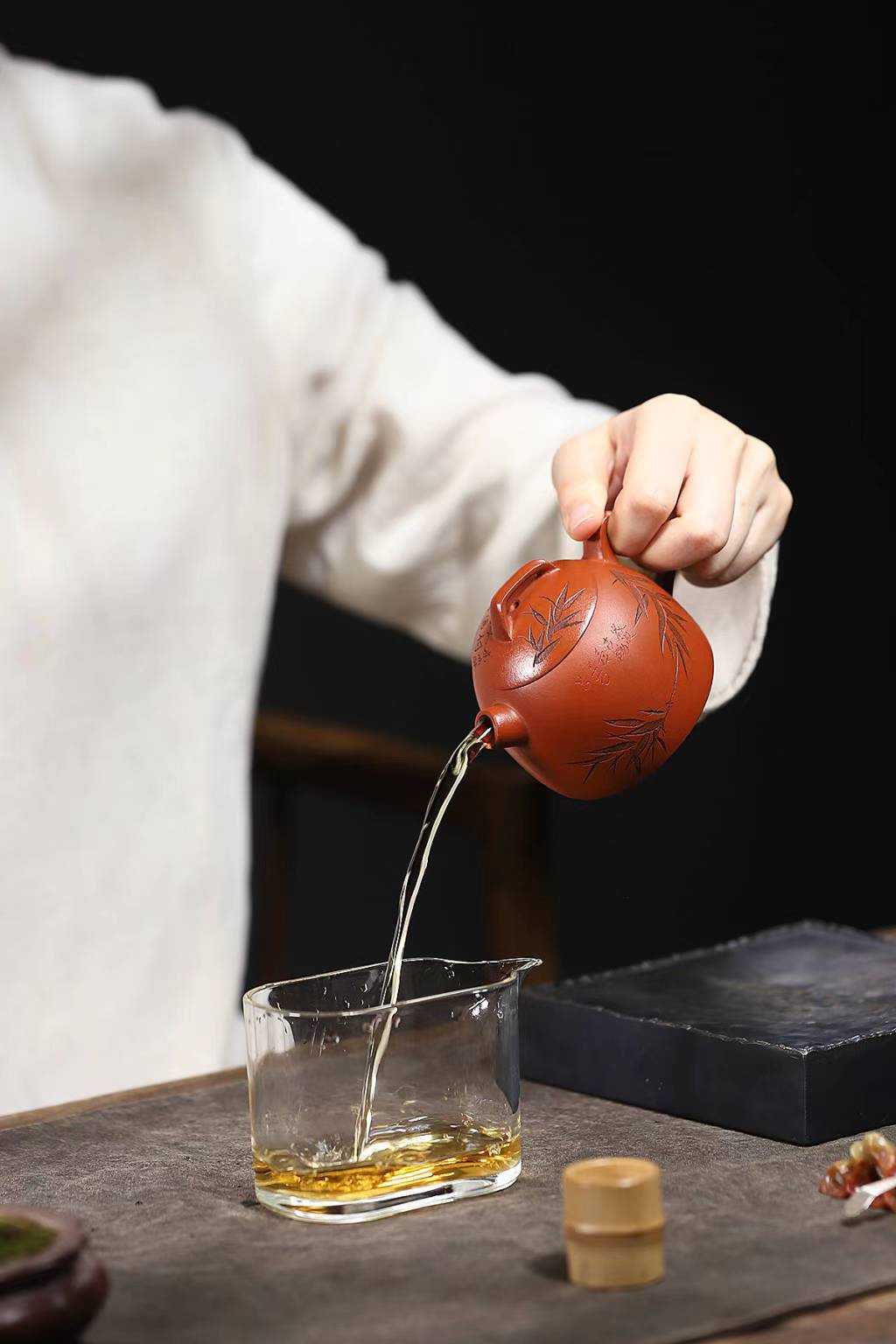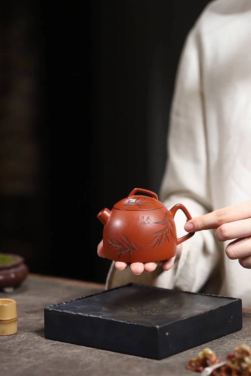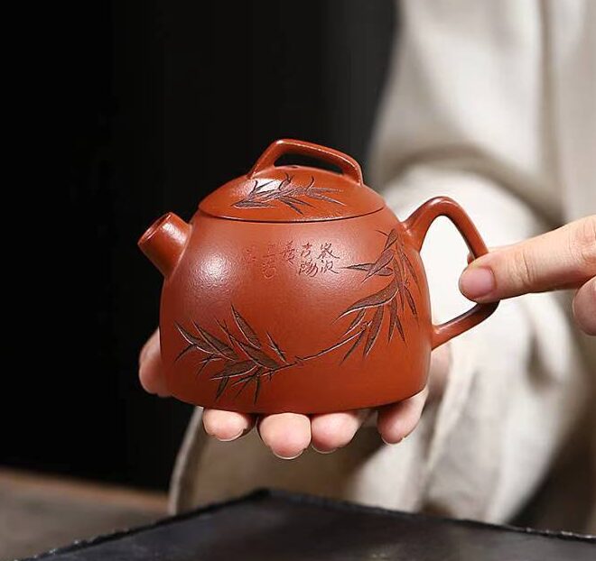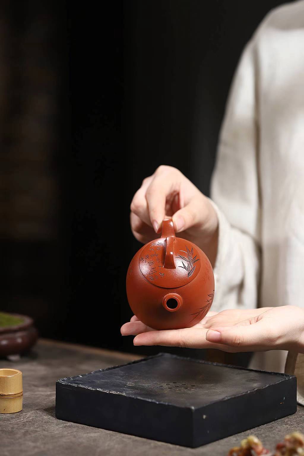 Chúng ta dùng nước đun sôi tưới lên xung quanh ấm và nắp để loại bỏ những bụi bẩn trong quá trình chế tác.