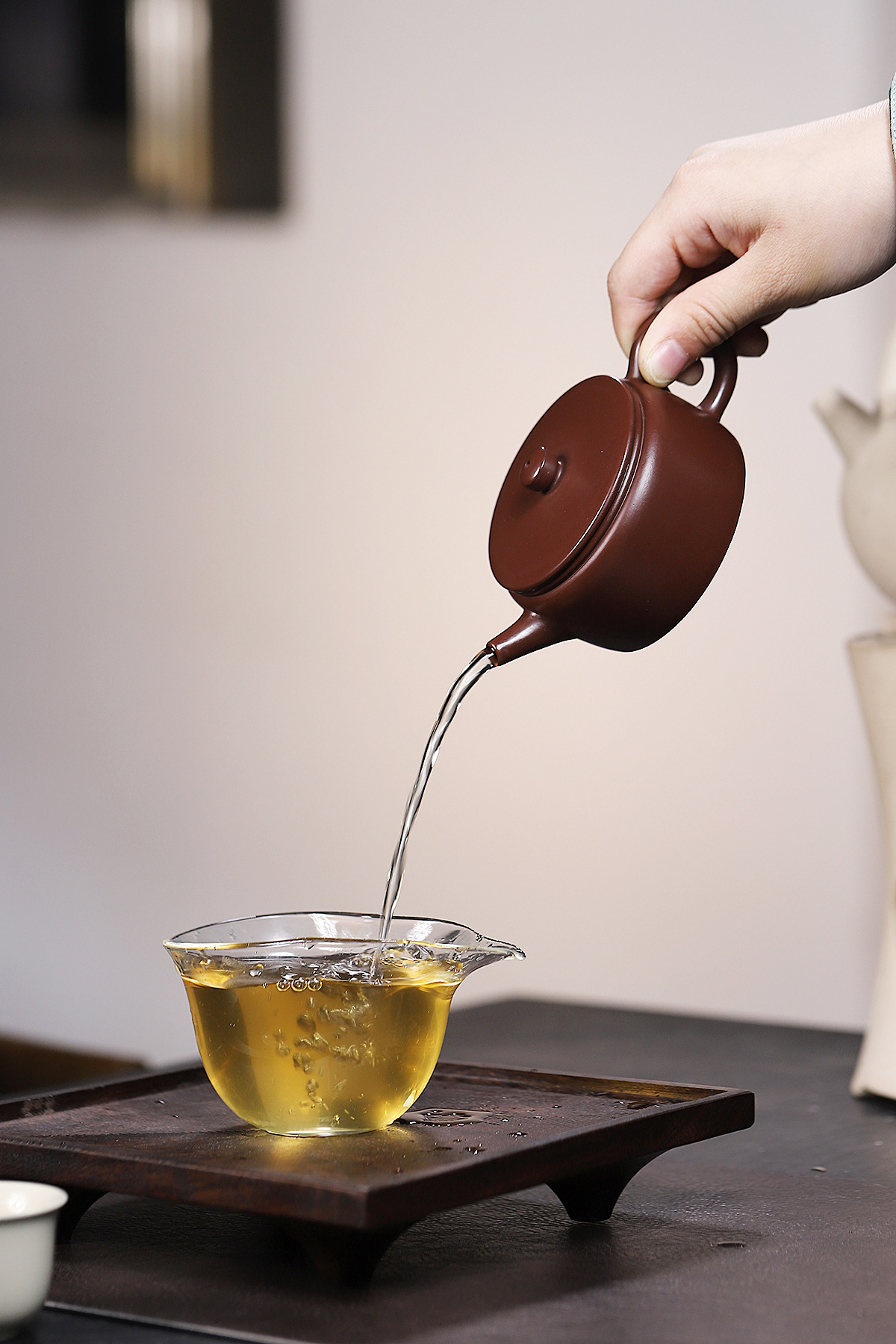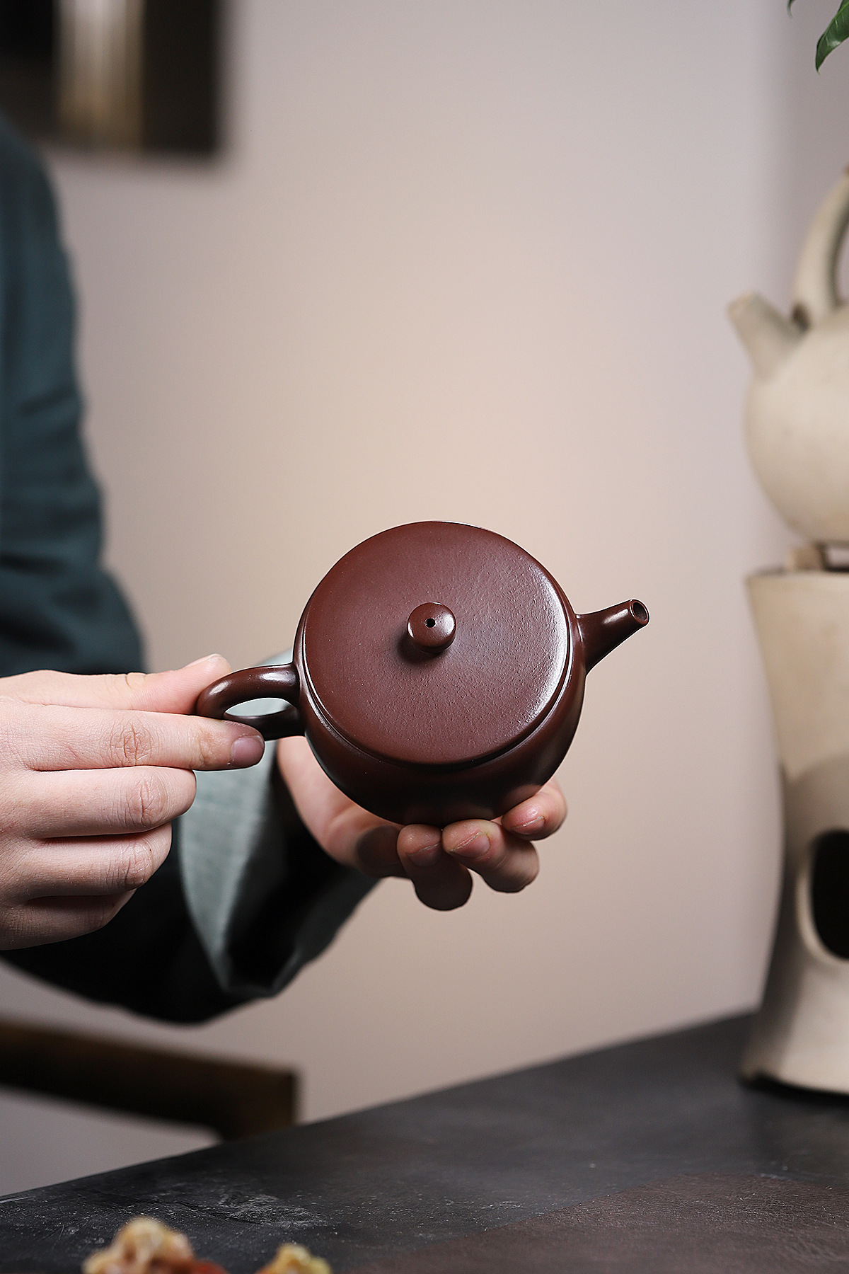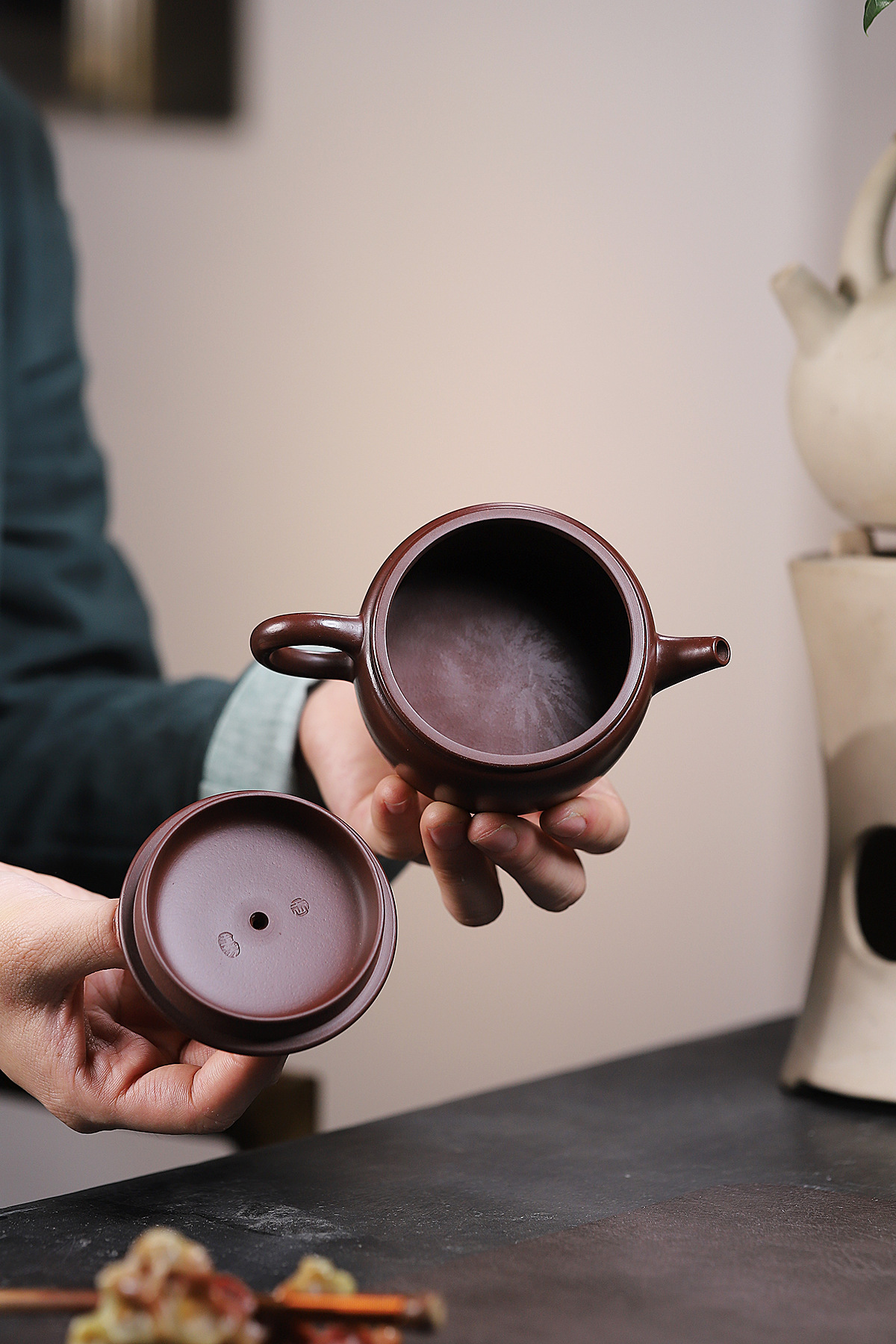 Chúng ta dùng nước đun sôi tưới lên xung quanh ấm và nắp để loại bỏ những bụi bẩn trong quá trình chế tác.