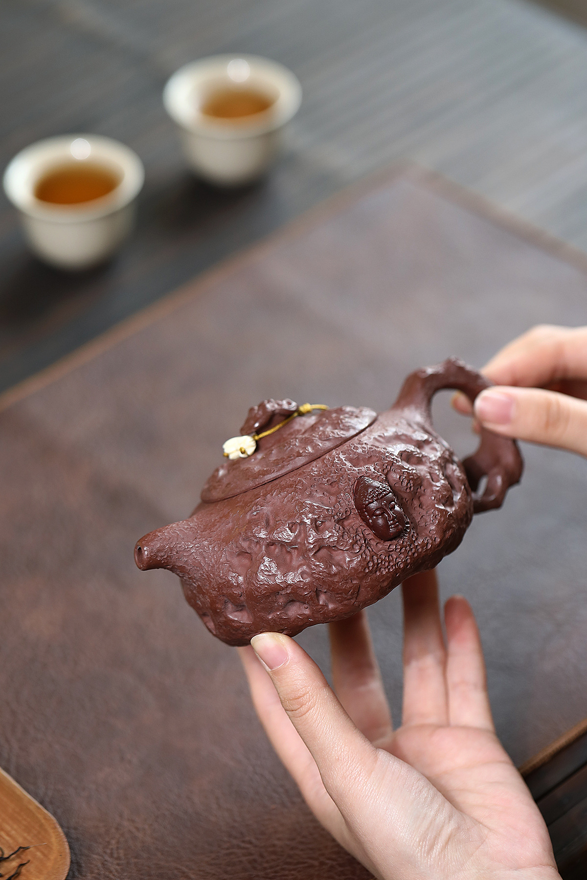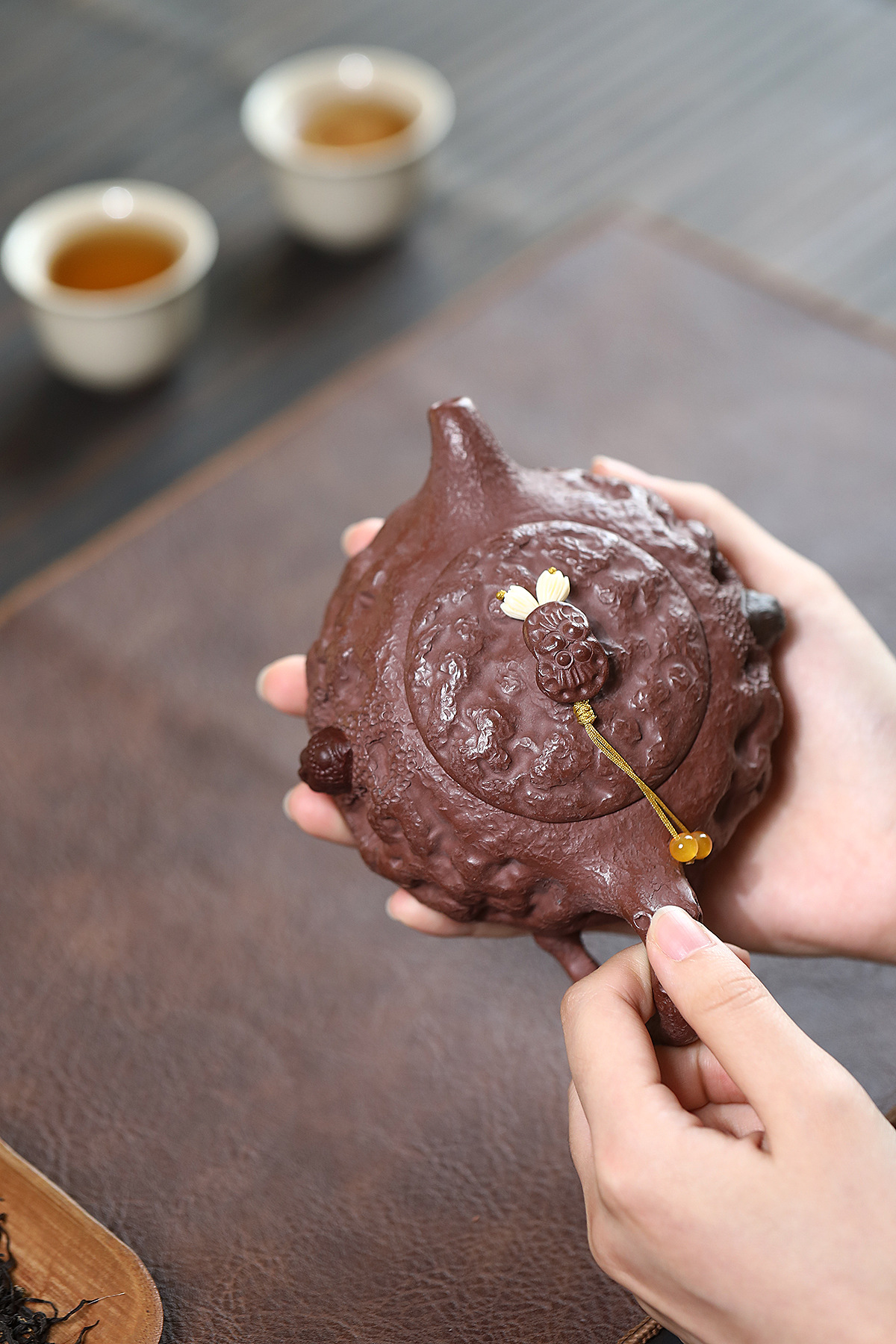 Chúng ta dùng nước đun sôi tưới lên xung quanh ấm và nắp để loại bỏ những bụi bẩn trong quá trình chế tác.