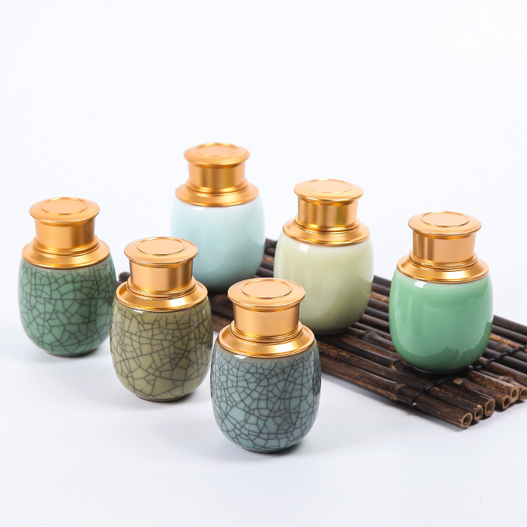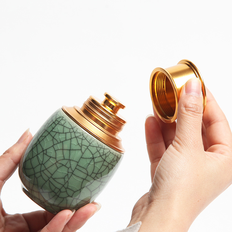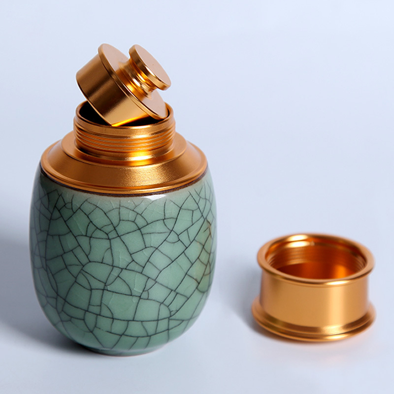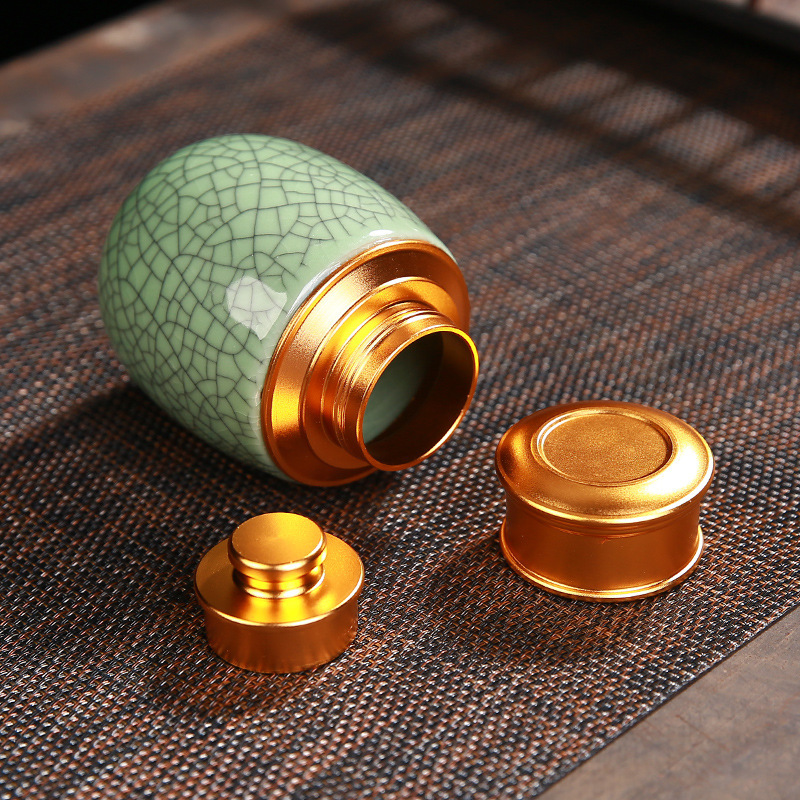 HŨ ĐỰNG TRÀ MEN RẠN NẮP KIM LOẠI