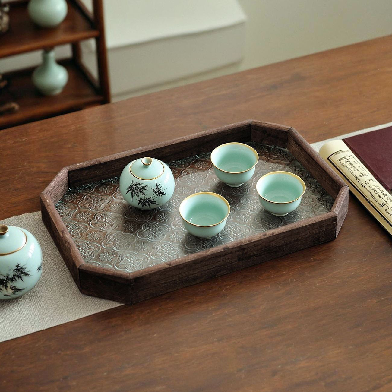 KHAY TRÀ GỖ TẦN BÌ MẶT KÍNH HOA VĂN