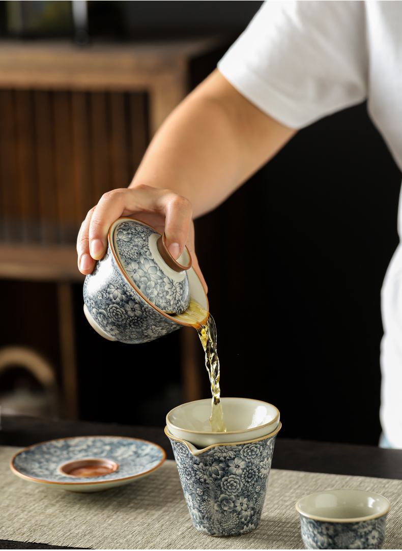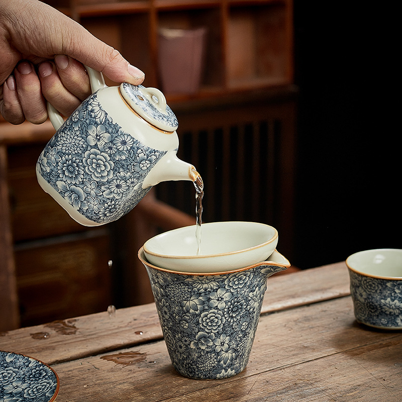 TỐNG TRÀ SỨ MEN LAM VẼ BÁCH HOA
